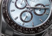 Iconic. Rare. Available. Above.Beyond is delighted to offer this Oyster Perpetual Cosmograph Daytona in platinum with an ice-blue dial and an Oyster bracelet, featuring a chestnut brown Cerachrombezel with tachymetric scale.